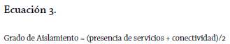 Consecuentemente, el grado de aislamiento es medido a través de las variables "presencia de servicios" y "conectividad" para cada espacio comunal (Ecuación 3).