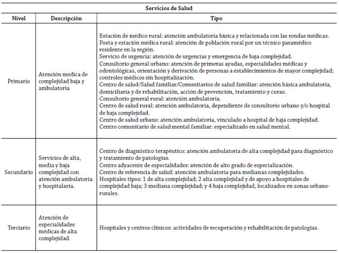 El sistema de salud chileno clasifica la atención en servicios que presentan niveles primario, secundario y terciario (Tabla 2).