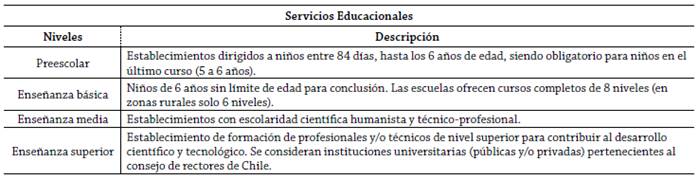Tabla 3: Niveles y descripción de los servicios educacionales en Chile