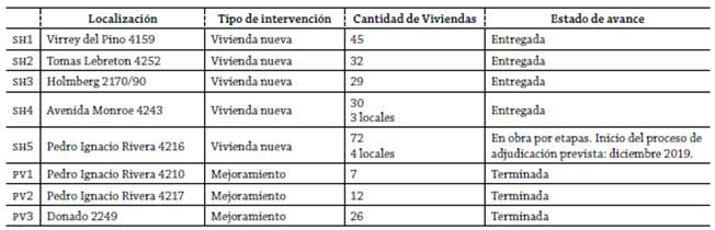 Tabla 1: Soluciones habitacionales ofrecidas en sector s de la Traza. CABA, 2019