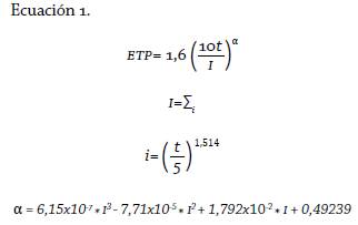 ETP= evapotranspiración potencial en cm/mes.