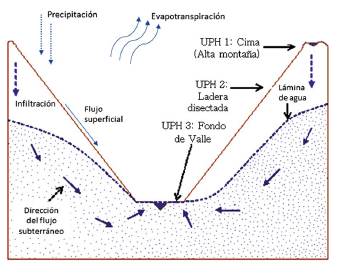 Figura 1: Diagrama conceptual de un paisaje hidrológico montañoso. Unidad de Paisaje Hidrológico (UPH).