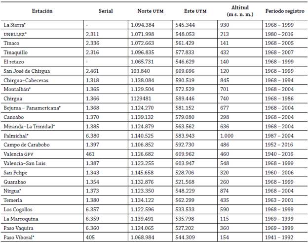 Datos: INTI-Minea, Oficina Regional de Cojedes. Nota: (*) estaciones ubicadas dentro de la cuenca.