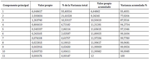Tabla 4: Varianza explicada por los componentes principales