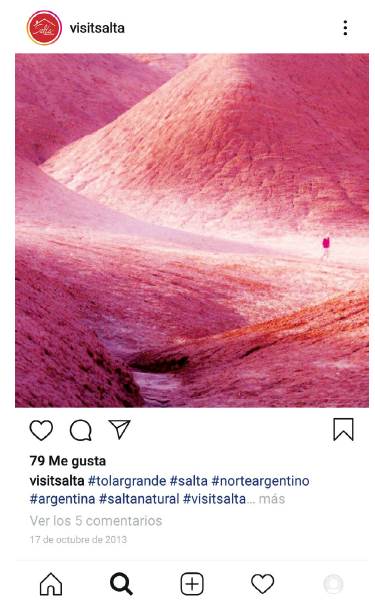 The article addresses the relationship between tourism, geography, and images, seeking to recognize how images mediate place tourist experience. To do this, the paper analyzes the official tourism promotion of Salta (Argentina) considering the main ideas about the destination created by local government. This is done by examining graphic material (booklets, books, magazines, brochures, posters, maps, etc.) edited and distributed by provincial government since 2007 to 2019. The analysis of graphic devices produced by provincial government shows that there are two main ideas about Salta as a tourist place. One of them portraits Salta as an unvisited place that is ideal for initial exploration. The other idea depicts it as a place where tourists can get access to an unaltered and rich cultural heritage. The text concludes by pointing out that official promotion strategy renews tourists' interest for the exotic, the different, and the remote, while allowing the multiplication of business options in a context where diversity is necessary to increase consumption.