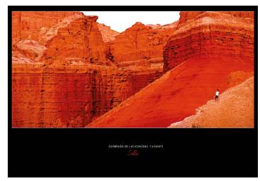El recurso a la escala, que coloca a alguna persona en contraste marcado con la amplitud del entorno, es recurrente en las fotografías y permite dar una idea de la vastedad de estos espacios. La Puna y también otras áreas como los Valles Calchaquíes suelen retratarse con planos panorámicos que muestran extensiones sin presencia humana o con la presencia de algún turista que permiten apreciar lo inconmensurable de estos espacios "vacíos" (Figuras 4 y 5).