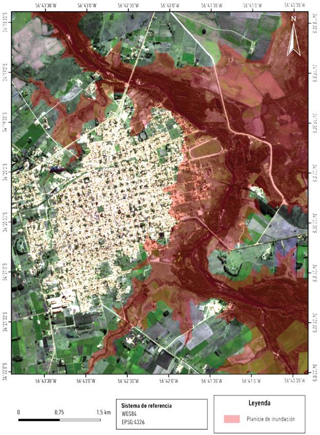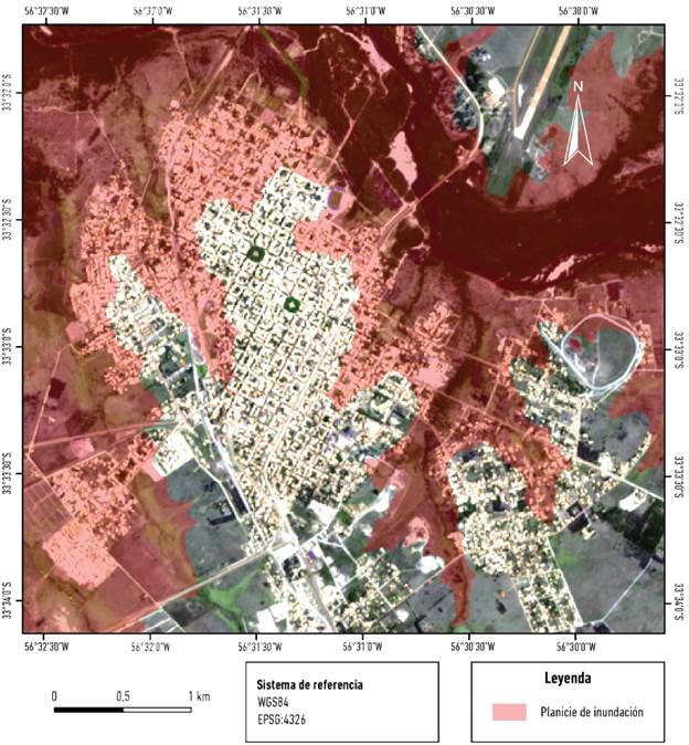 Figura 4: Área de riesgo por inundaciones en San José de Mayo.