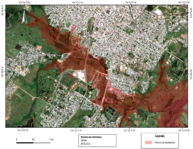Figura 8: Área de riesgo de eventos de inundación en Rivera.