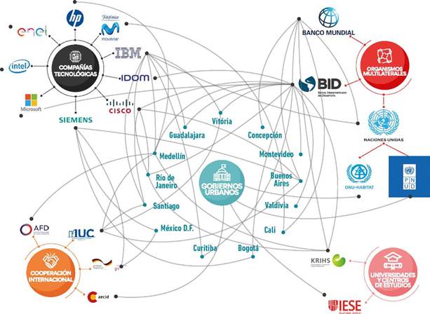 Figura 1: Mapa de actores y relaciones en la promoción de la smart city en Latinoamérica.