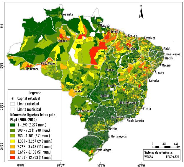 Sendo assim, verifica-se uma melhora significativa nesse cenário. Ainda mais, é possível sugerir que essa melhora se associa à implantação do PLpT. Quando se observam os dados especializados sobre o número de ligações por municípios realizadas durante os primeiros sete anos do programa, revela-se um número de 2.493.284, com uma média de 455 ligações por município atendido (4.282 municípios).