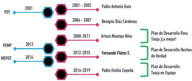 Figura 6: Periodos, alcaldes, planes de desarrollo y planes de ordenamiento territorial.