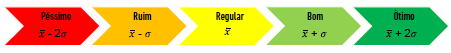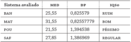 Havendo a sistematização dos dados para elaboração do IQS geral foram consideradas a média e o desvio padrão do resultado das somas por sistema analisado e para cada uma das zonas dos sistemas. Com a média e o desvio padrão geral, realizou-se um IQS ordinal, sendo que x̅ representa a média, e o o desvio padrão conforme apresentado na Figura 3.