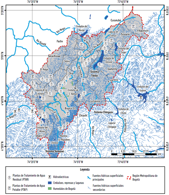 Figura 3: Sistemas de abastecimiento, potabilización y saneamiento del agua en la Sabana de Bogotá.