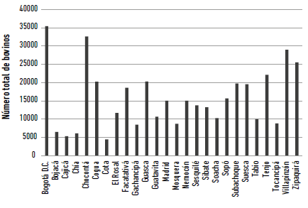 Figura 7: Número total de bovinos por municipio dentro del Área Metropolitana Funcional de Bogotá.