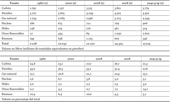Tabla 1: Estadísticas de la matriz energética, 1980-2040