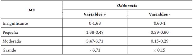 Tabla 6: Valores de referencia para la interpretación de los odds ratio (ME)
