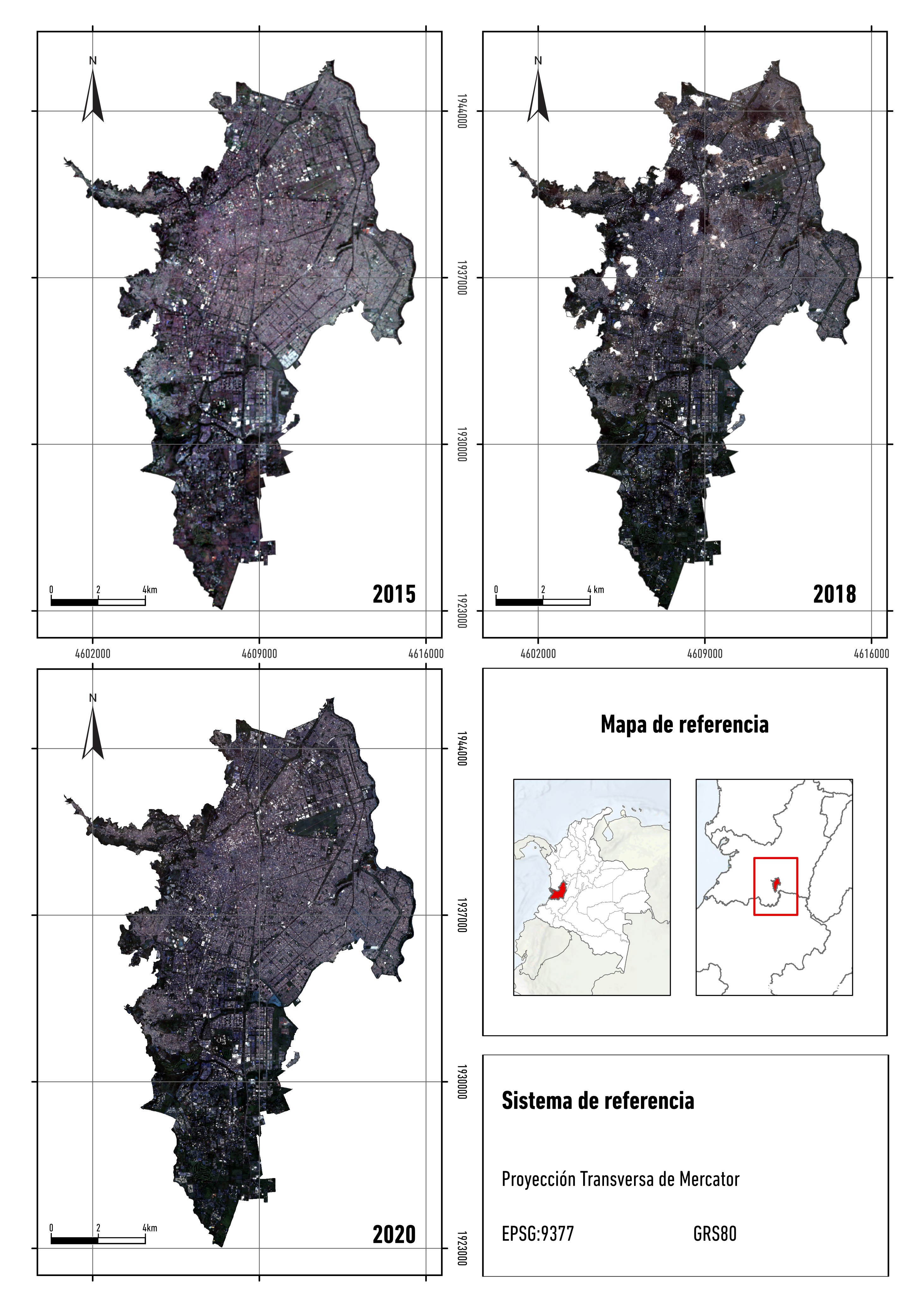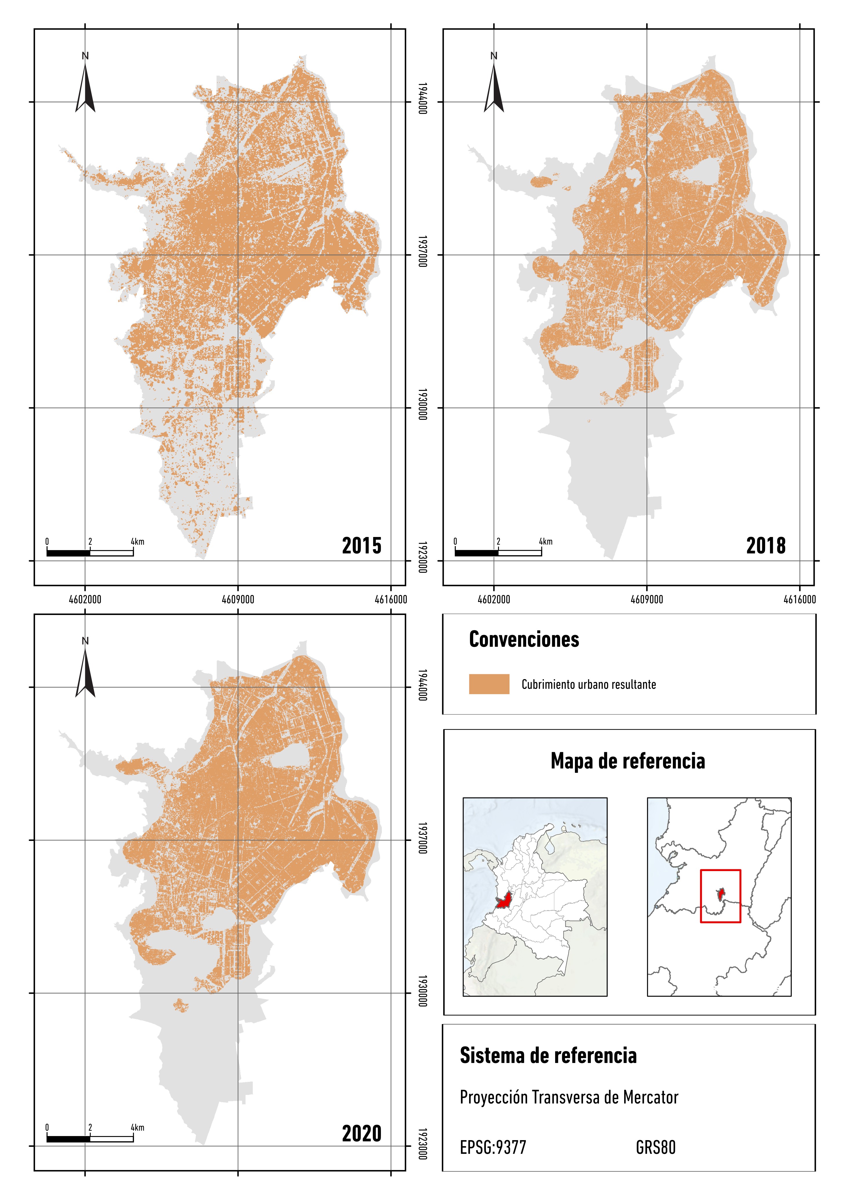 Desde los contextos investigativos y geográfico, este estudio cuantitativo tiene alcance correlacional (Hernández, Fernández y Baptista 2015), ya que se desarrollan procesos Machine Learning con árboles de predicción en técnicas espaciales referidas a la percepción remota (Bozzano et ál. 2016), con el fin de obtener clasificaciones sobre imágenes satelitales, fundamentales para el cálculo de los indicadores ODS 11.3.1 y 11.7.1.