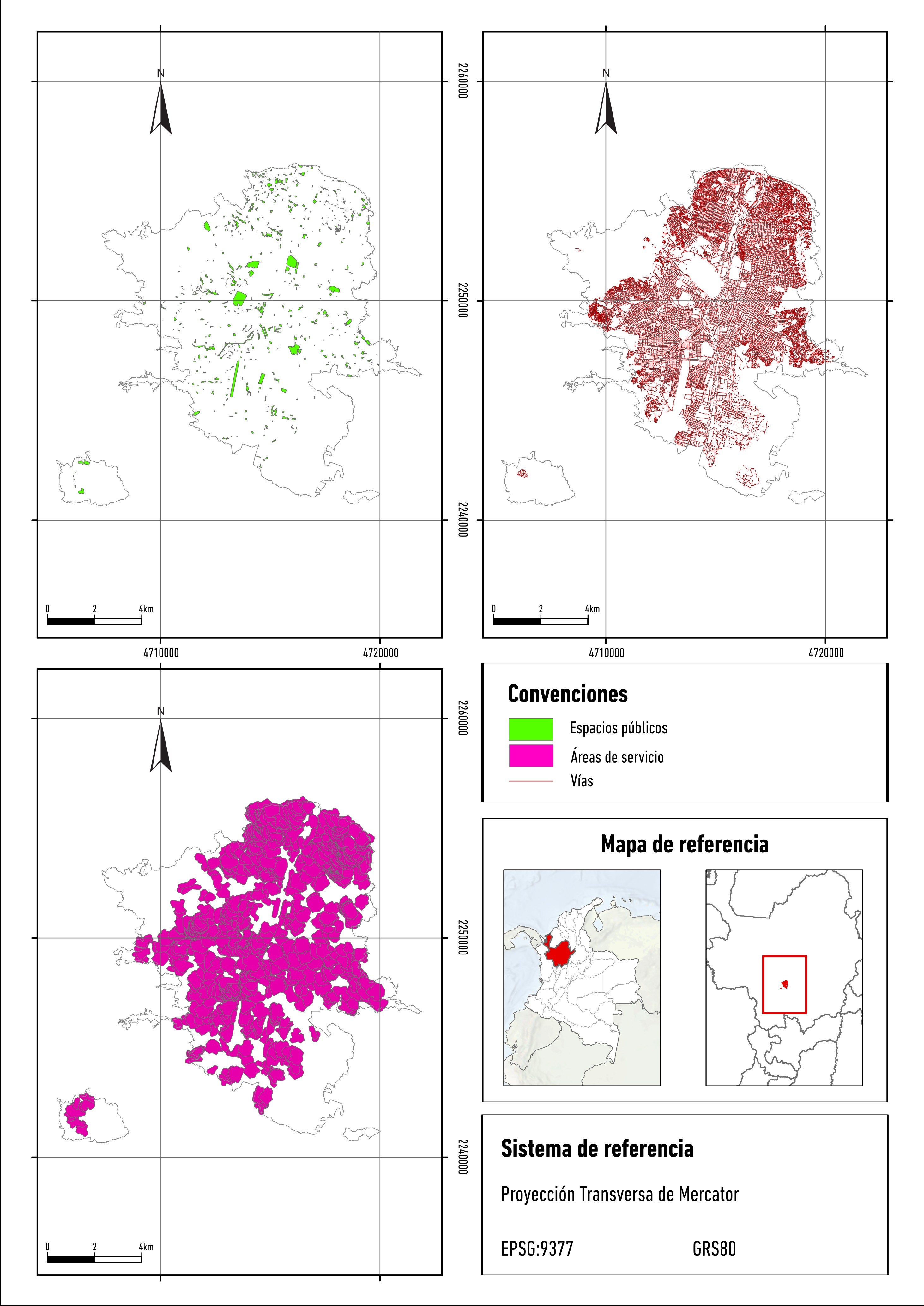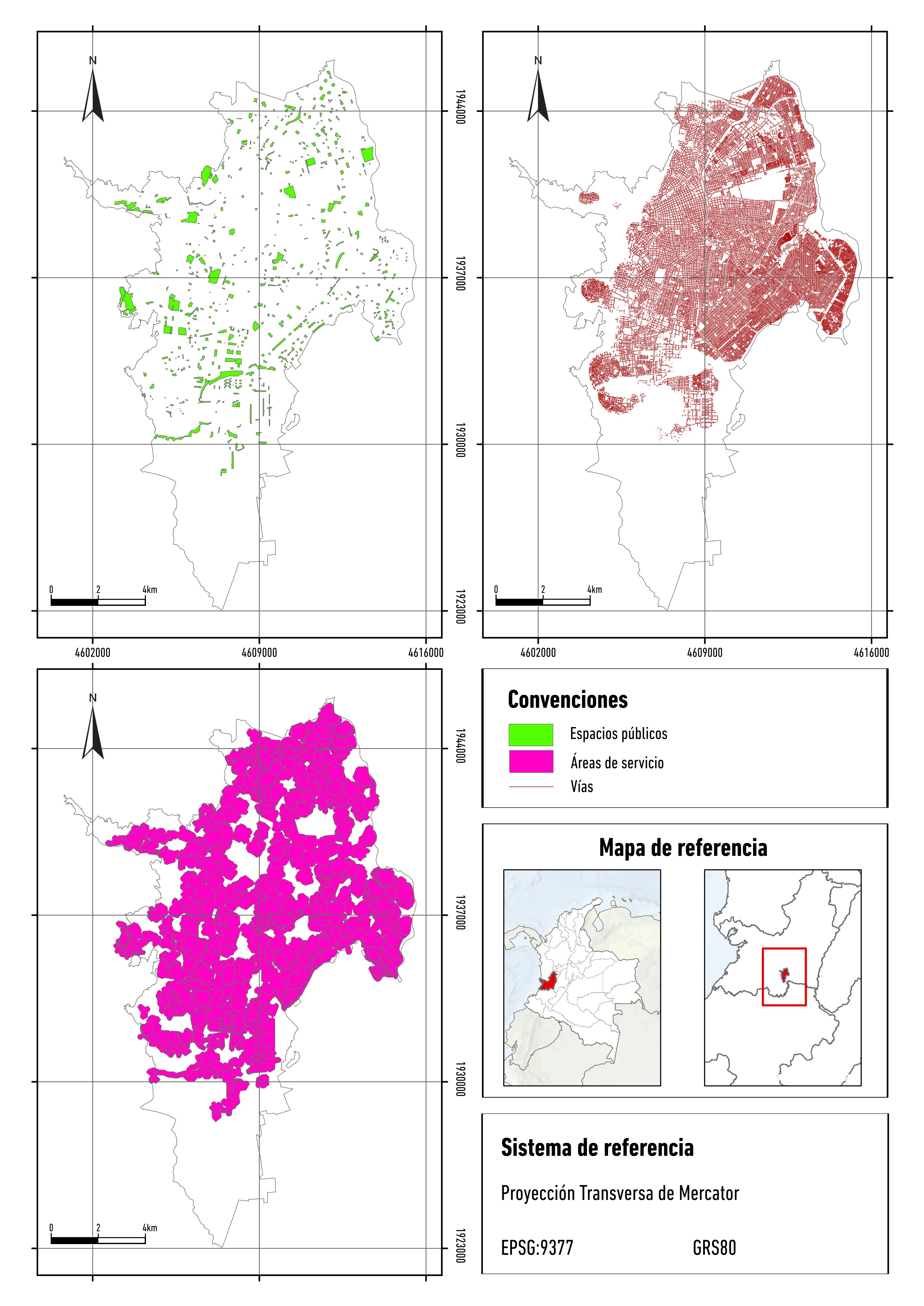 Análisis espacial para identificar espacios públicos abiertos, y cálculo del área total ocupada por los estos espacios;
