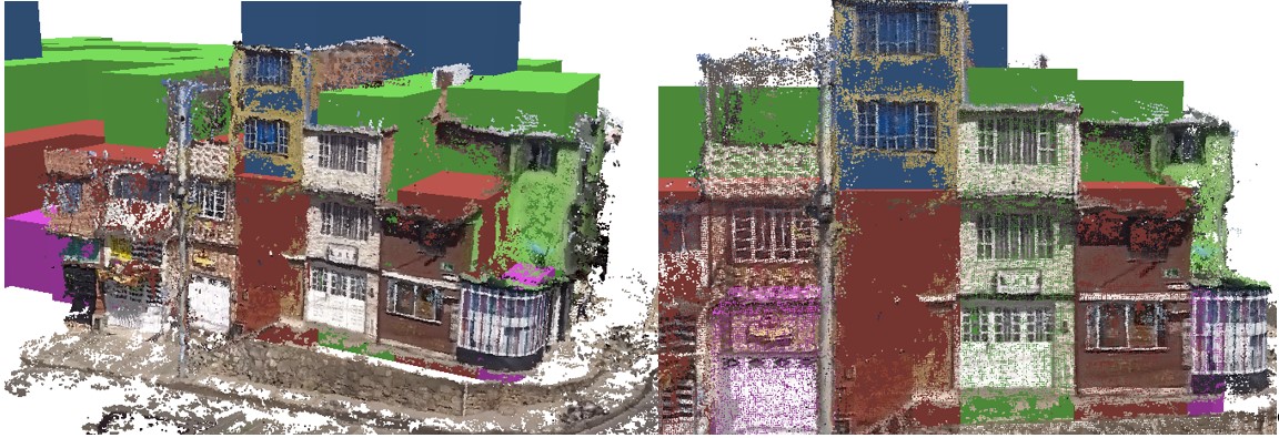 Uno de los principales componentes para el buen funcionamiento de la reconstrucción, es la precisión posicional y temática de los objetos (Puche et ál. 2017), por lo tanto, la captura de puntos de control terrestre se vuelve invaluable dentro del proceso, sin embargo, se destaca el uso de sistemas de referencia avalados en normas nacionales e internacionales que permitan la interoperabilidad propuesta por el catastro multifinalitario (Erba 2007). Respecto al último punto, la retícula de puntos mostró un buen ajuste y superposición en la ubicación geográfica de estudio, sin embargo, los espacios vacíos en la caracterización deben ser objeto de extremo cuidado para evitar la pérdida de información relevante para la identificación física, como se muestra en la Figura 8 donde algunos lugares presentan ausencia de información.
