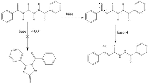 Por medio de la reacción del grupo NH2 terminal de la niacida y la isoniacida con diferentes tipos de isotiocianatos ha sido posible sintetizar diversas tiosemicarbazidas, las cuales han sido utilizadas en la formación de compuestos heterocíclicos como los 1,2,4-triazoles con un amplio espectro de actividad biológica [3], [4]. La síntesis de estos compuestos puede darse por medio de la ciclación espontánea de su tiosemicarbazida respectiva, o ciclándolos por acción de bases como NaOH, NaOEt o Na2CO3 [5], [6].