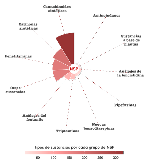 Los últimos informes sobre drogas emitidos por la ONUDD y la OEDT posicionan al cannabis como la droga de mayor consumo mundial; empero, son enfáticos en la creciente producción de drogas sintéticas -principalmente opioides como los análogos del fentanilo- y el aumento en el consumo experimental y recreativo en todas las latitudes del planeta. De igual forma, estos organismos advierten de la gran cantidad de NSP en la categoría de otras sustancias aún no clasificadas, consecuente con la constante innovación en la producción de drogas, de las cuales la mayoría son NSP con efectos hipnóticos y sedantes, como las nuevas benzodiazepinas [23], [27].