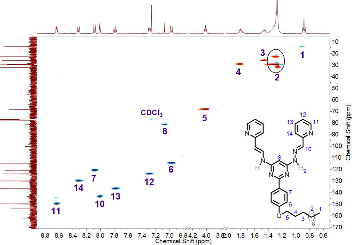 Figure 4. HSQC spectrum (400 MHz) of bis(hydrazone)