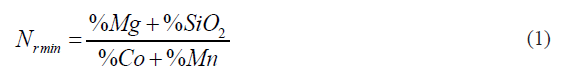 El número de mineral (Nrmin ) se calcula a partir del conocimiento de la composición química de la pulpa laterítica. Según el número de mineral determinado por la ecuación (1), su valor caracteriza el comportamiento de la pulpa en la sedimentación. Se ha comprobado que, cuando 7 < Nrmin < 14, la pulpa tiene la sedimentación deseada [17].