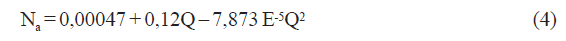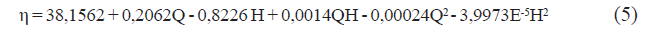 Se propusieron los siguientes modelos matemáticos (3, 4 y 5) que permiten obtener el punto de operación en correspondencia con los requerimientos del caudal de la bomba centrífuga. Estos modelos se obtuvieron teniendo en cuenta los nomogramas de las bombas centrífugas instaladas, con un coeficiente de correlación igual a 0,95.