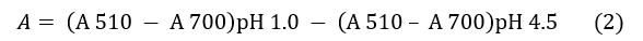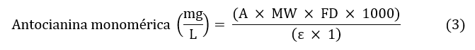 La concentración total de antocianina monomérica en cada muestra fue determinada a través de la Ec. (3):