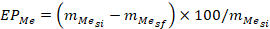 EPMe: Eficiencia de precipitación de especie metálica, en %