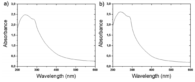 The exploratory scanning by ultraviolet and visible spectrometry occurred at wavelengths between 200 nm and 600 nm with an interval of 1 nm [21] in a UV/Vis spectrophotometer. The extracts were prepared at a concentration of 1 mg·mL-1 diluted in water.