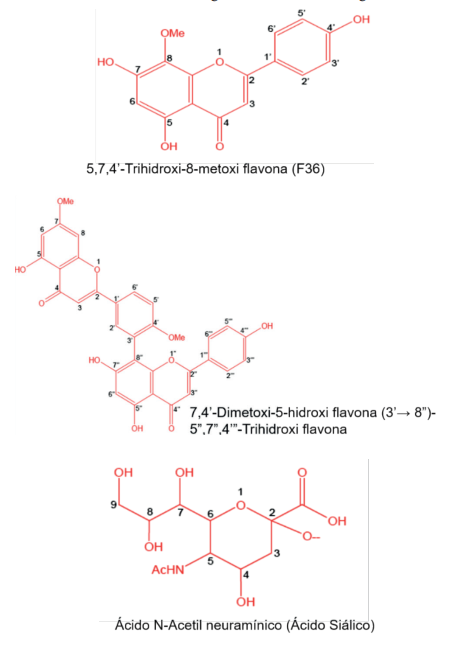 O vírus influenza A é responsável pela gripe aviária; condição patológica que afeta principalmente pássaros, cavalos e mamíferos marinhos, no entanto, o subtipo H5N1 tem a capacidade de infectar humanos rapidamente; assim, expondo-os a um possível evento pandêmico. Portanto, o objetivo deste estudo foi realizar o acoplamento e modelagem de homologia tridimensional de flavonóides derivados da amentoflavona com as neuraminidases H1N1 e H5N1 do vírus da influenza aviária. Inicialmente, a estrutura 3D da neuraminidase H1N1 foi obtida por homologia. Em seguida, o acoplamento molecular de H1N1 foi realizado com seis ligantes (F36, Ginkgetin, 3S, 3R, 5S, 5R, 6S e 6R) e, posteriormente, H5N1 e os ligantes F36, Ginkgetin, 5R e 6R. Finalmente, uma análise de interação foi realizada nos complexos obtidos. Os resultados mostraram uma relação entre a atividade inibitória e as interações hidrofóbicas e do tipo ponte de hidrogênio formadas entre o sítio ativo das neuraminidases e os ligantes. Além disso, foi observada uma melhoria na atividade inibitória dos ligantes para a estereoquímica do tipo R e pequenos substituintes volumosos. Assim, é proposta a avaliação experimental dos ligantes 5R e 6R como potenciais inibidores do H5N1.