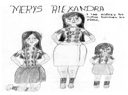 La cosmogonía representada en los relatos y en el dibujo habla de subjetividades que buscan reafirmarse en lo étnico, cultural, social y político, especialmente en el uso y ocupación del nuevo espacio geográfico, que tiene su resonancia en el cuerpo como locus de apropiación del territorio, en un intento por preservar su ancestralidad. El siguiente fragmento narrative expresa esta situación de manera contundente: