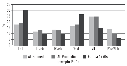 Figura 1: Comparación entre la estructura de clases en América Latina y Europa