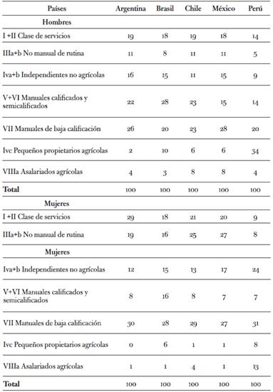 Tabla 1: Estructura de clases en América Latina según sexo (en porcentaje)