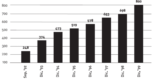 Figura 1: Evolución de la productividad en Edesur (1992-1999)
