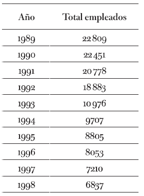 Tabla 1: Personal empleado en Segba y privatizadas (1989-1998)