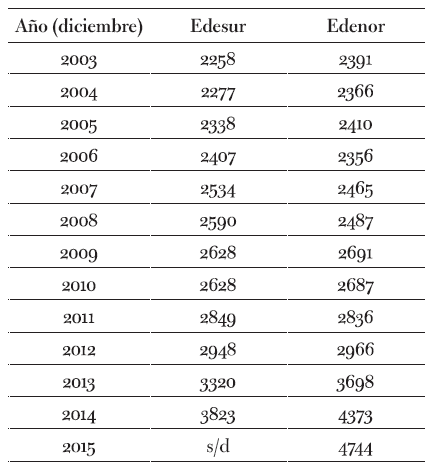 Fuente: elaboración propia con base en memorias y balances de Edesur y Edenor 2003 a 2015.