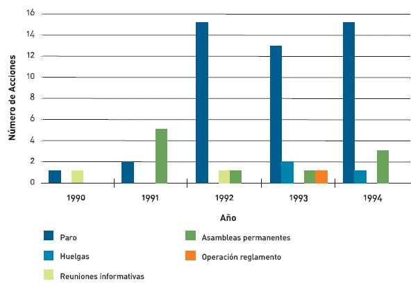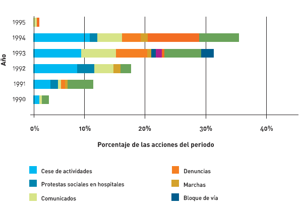 Figura 2: Distribución porcentual de las acciones de protesta de los médicos en Colombia (1990-1995)