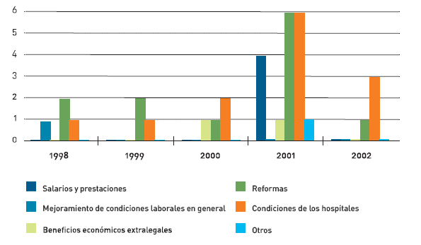 Figura 4: Número de motivaciones de las acciones de protesta de los médicos en Colombia (1998-2002)