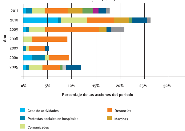 Figura 7: Distribución porcentual de las acciones de protesta de los médicos en Colombia (2005-2011)