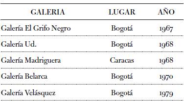 Por otro lado, surgió la figura del curador, con responsabilidades diferenciadas de las del director de museo. En lo que respecta a los lugares de exposición, el número de galerías comerciales y de museos de arte moderno se incrementó, y los que habían aparecido en la década anterior, ampliaron sus plantas de personal. El Instituto Colombiano de Cultura (Colcultura) se creó en 1968 y el Museo de Arte Moderno -que había sido fundado en 1955 y cerrado durante el gobierno de Gustavo Rojas Pinilla- volvió a abrirse en 1962 -luego se trasladó a la Universidad Nacional en 1965, y posteriormente, en 1968, tuvo una sede propia, erigiéndose en el lugar que ocupaba el Museo de Arte de la Universidad Nacional-, y el Museo de Arte Contemporáneo abrió puertas en 1966. A estos lugares se sumaban sitios ya tradicionales que continuaron con una gran dinámica, como la Biblioteca Luis Ángel Arango, la Biblioteca Nacional (en especial la Sala Gregorio Vásquez), el Centro Colombo Americano y otros espacios de carácter privado ya existentes, como las librerías El Callejón, la Librería Buchholz y las galerías Arte Moderno y Estrella, activas desde la década de 1970; también se debe mencionar la que, con el tiempo, fue la galería más influyente, la Garcés Velásquez, fundada en Bogotá en 1977, que se sumó a la Galería Belarca, de reconocida presencia, creada a finales de la década de 1960 (Huertas, 2005, p. 31).