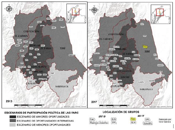 Figura 6: Reacomodo de grupos armados, zona veredal y escenarios de participación política de las FARC en el Catatumbo