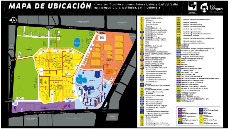 Direccionales, en el sentido en que se convierten en referencias, por ejemplo, la cafetería central, la plazoleta de Ingenierías, la biblioteca Mario Carvajal, la venta de frutas, el centro deportivo universitario (CDU), el ágora, los auditorios del uno al cinco.