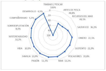 Los testimonios se organizan de forma muy similar a lo observado en el caso de "mar". Por una parte, se presentan aquellos donde la pesca artesanal aparece pensada, imaginada y representada como una forma de vida, es decir, anclada en valores identitarios no instrumentales; por otra parte, como actividad económica -productiva, principalmente- orientada al sustento, es decir, como sentido reproductivo de esa forma de vida; por último, la pesca artesanal como actividad económica en la lógica del negocio que genera ingresos pecuniarios, en el sentido instrumental más puro.