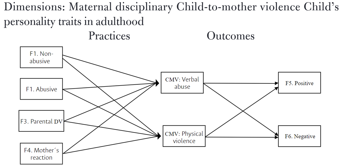 Utilizando o questionário International Parenting Study (IPS) e uma amostra transcultural de 469 estudantes de universidade do primeiro ano (da Colômbia e América do Norte), este estudo mede os efeitos da disciplina materna na violência infantil contra a mãe. O IPS inclui indicadores sobre as relações familiares quando o participante tinha cerca de 10 anos de idade. Por exemplo, a disciplina materna, a reação da mãe ao mau comportamento de seu filho, a violência doméstica entre os pais e o abuso verbal e físico da criança à mãe. A correlação entre a experiência infantil das pessoas entrevistadas e seus traços de personalidade adulta também é analisada. Os resultados sugerem que a agressão psicológica materna durante a infância, em vez do uso materno de violência física para disciplinar a criança, é o mais forte preditor do uso de violência infantil contra a mãe. Este estudo contribui para a literatura existente, fornecendo evidências empíricas para algumas das teorias do comportamento violento ou criminoso, segundo as quais este comportamento se explica pela transmissão cultural por imitação ou observação, aprendizagem do comportamento violento na família e em outros grupos de socialização precoce, e a transmissão da desigualdade de gênero. Em outras palavras, o comportamento violento é aprendido na família, reforçado por atitudes favoráveis a tal comportamento, e transmitido de uma geração para a próxima. O uso comum da violência pela mãe e seu parceiro pode se tornar num padrão de interação ou resolução de conflitos entre os membros da família. As evidências empíricas também apoiam a hipótese da co-ocorrência de vários tipos de violência em um lar violento, como a violência doméstica e o abuso infantil. Finalmente, algumas implicações na política pública são discutidas.