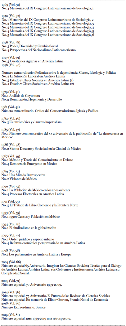 Tabla 1: Números temáticos y extraordinarios de la Revista Mexicana de Sociología