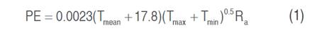 To employ an energy variable instead of a chronological scale, the number of days was transformed into cumulative potential evapotranspiration units (mm) using the Hargreaves and Samani (1982) equation 1: