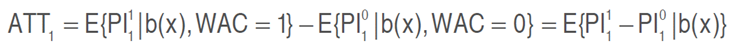 Where, treatment condition (With Agricultural Credit) is denoted by WAC =1 and WAC = 0 otherwise, and the impact variable (PI