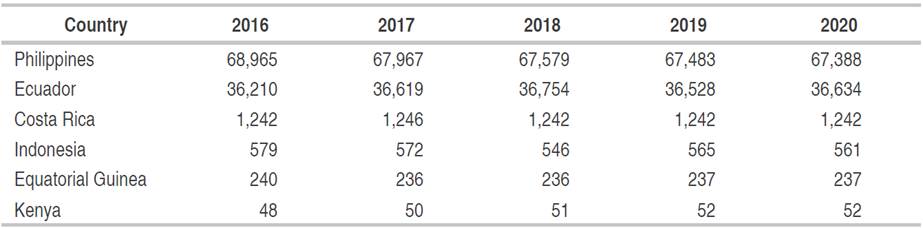 Table 4: Main country producers of abaca from 2016 to 2020 and its production in ton.